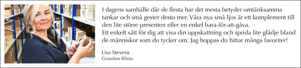 Bara någonting litet-ljusen innehåller exakt samma ingredienser som alla Klintas ljus – sojavax, rapsolja, kokosolja och doftolja/eterisk olja avsedd för hudvård. Just detta ljuset innehåller doften Bärnsten & Tonkaböna.